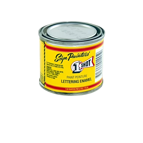 1 Shot Lettering Enamels are oil based, high gloss enamels for interior and exterior use on metals, wood and glass; and have been the benchmark in lettering enamels for over 50 years. Excellent flow characteristics, single stroke coverage and vibrant durability are just a few of the reasons 1 Shot Lettering Enamels remain the favorite of pinstripers and sign painters alike. With their infinite color blendabilty and a full line of reducers and hardeners, it's no wonder 1 Shot Lettering Enamels are used by more sign and graphics professionals, than any other brand.