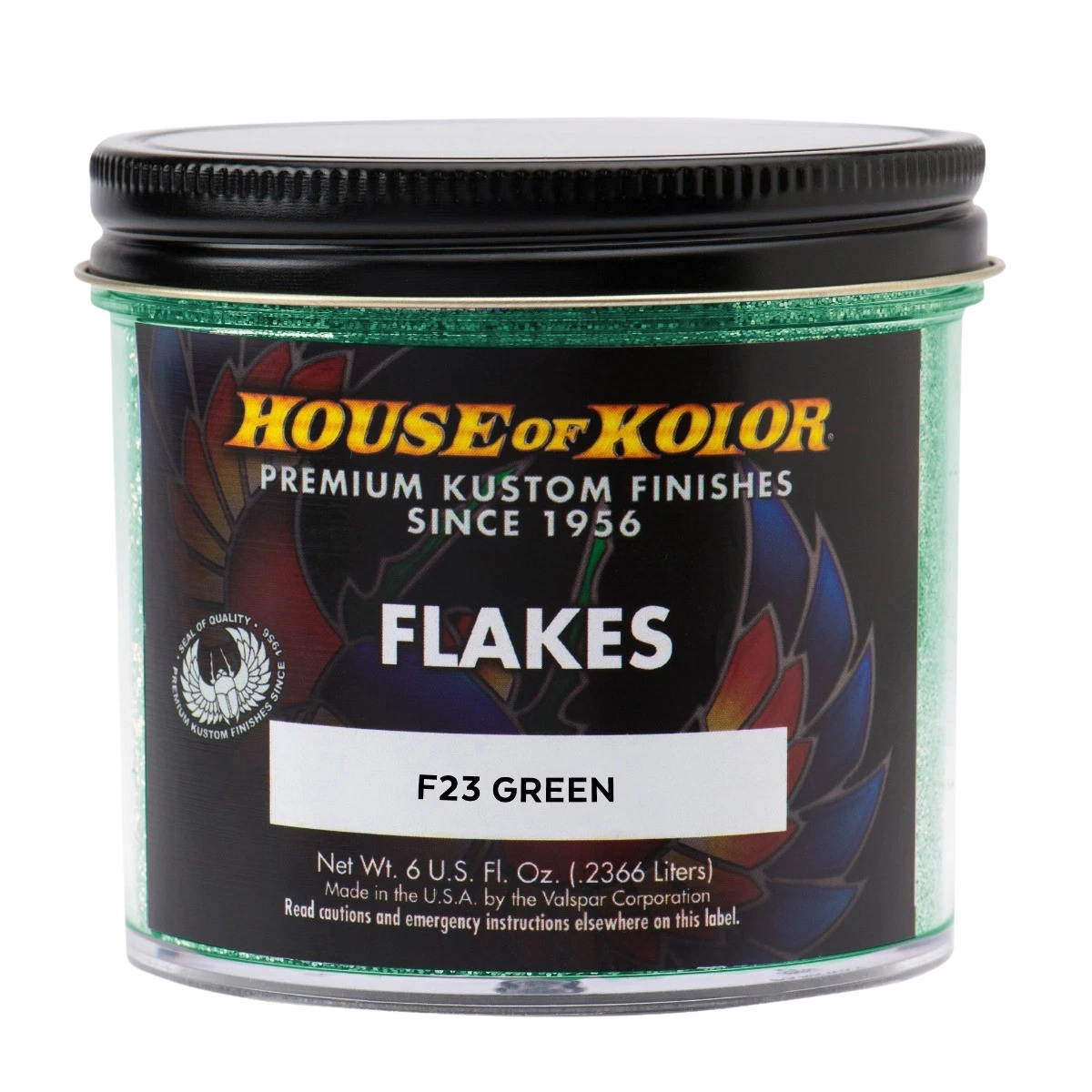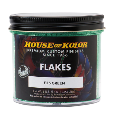 House of Kolor's green flake. F23 Green Flake adds bold metallic sparkle and vivid green highlights for custom paint jobs, enhancing depth, brilliance, and show-ready dimension on any surface.